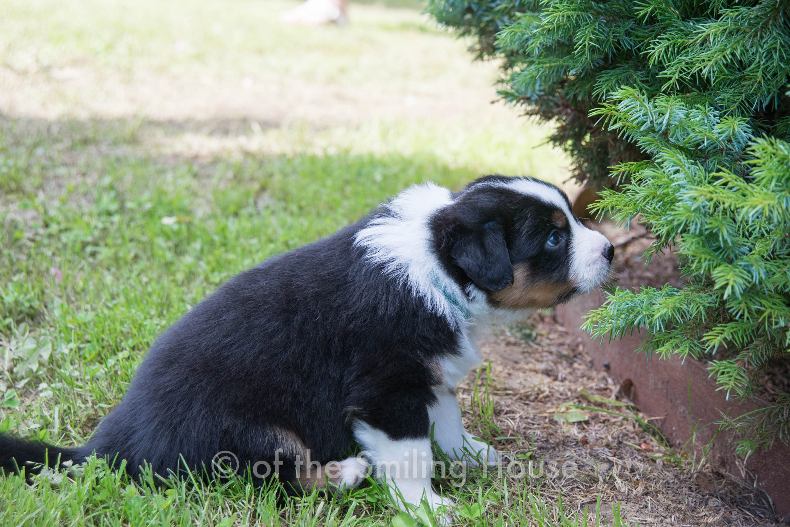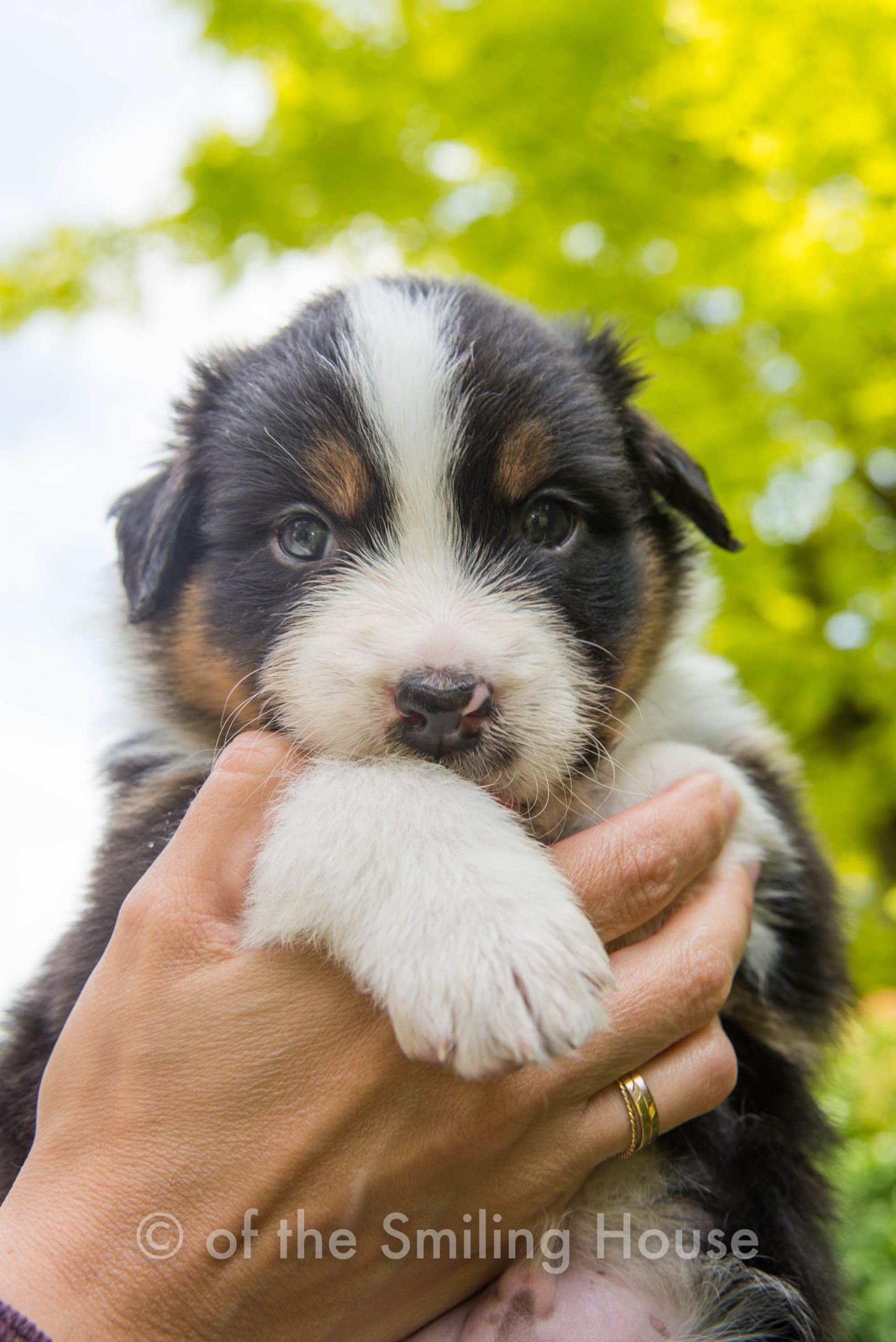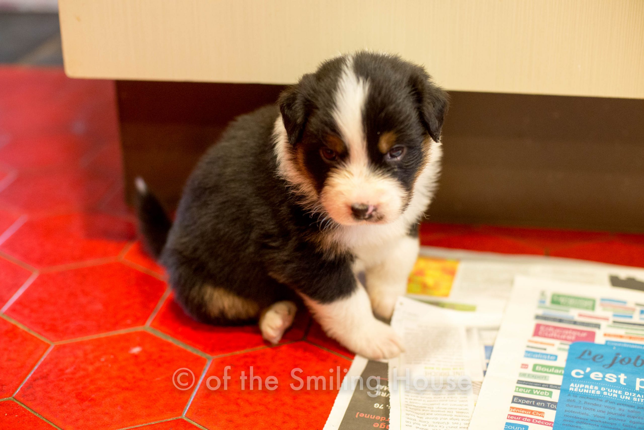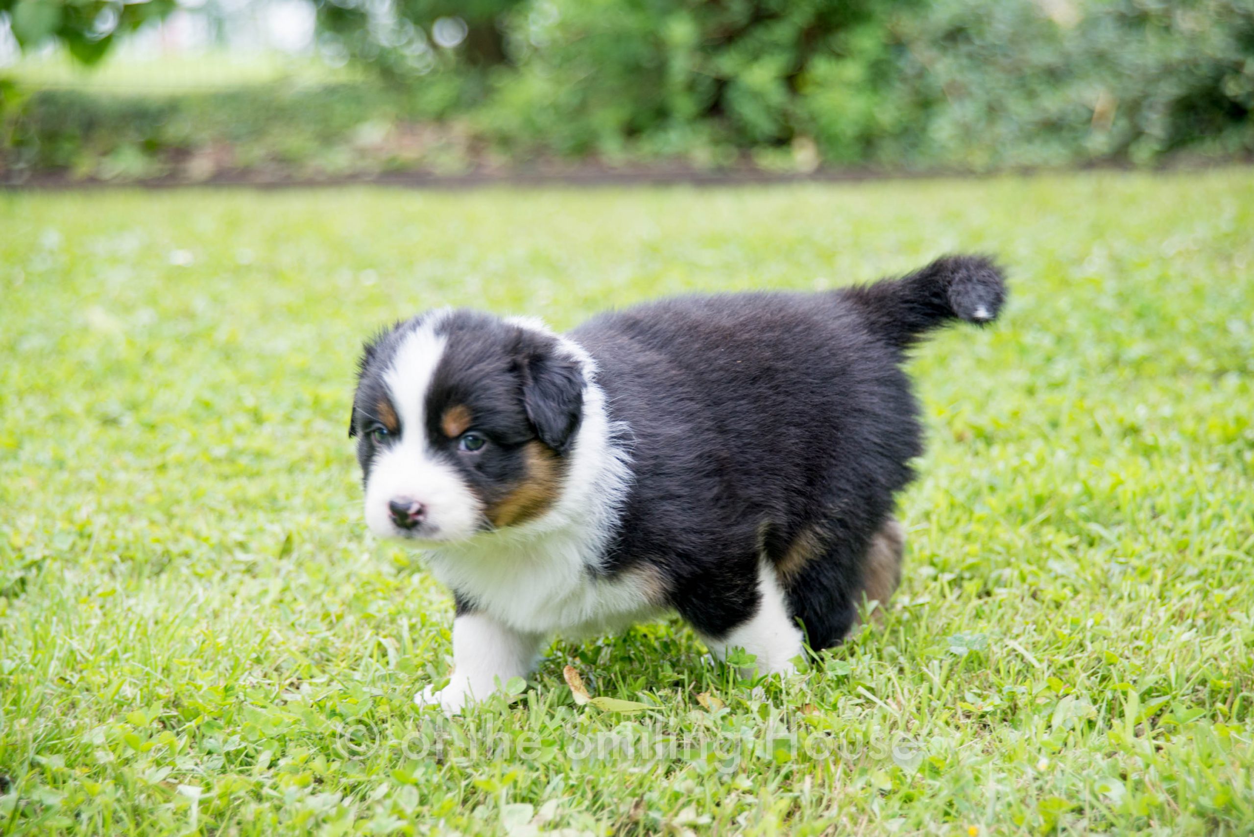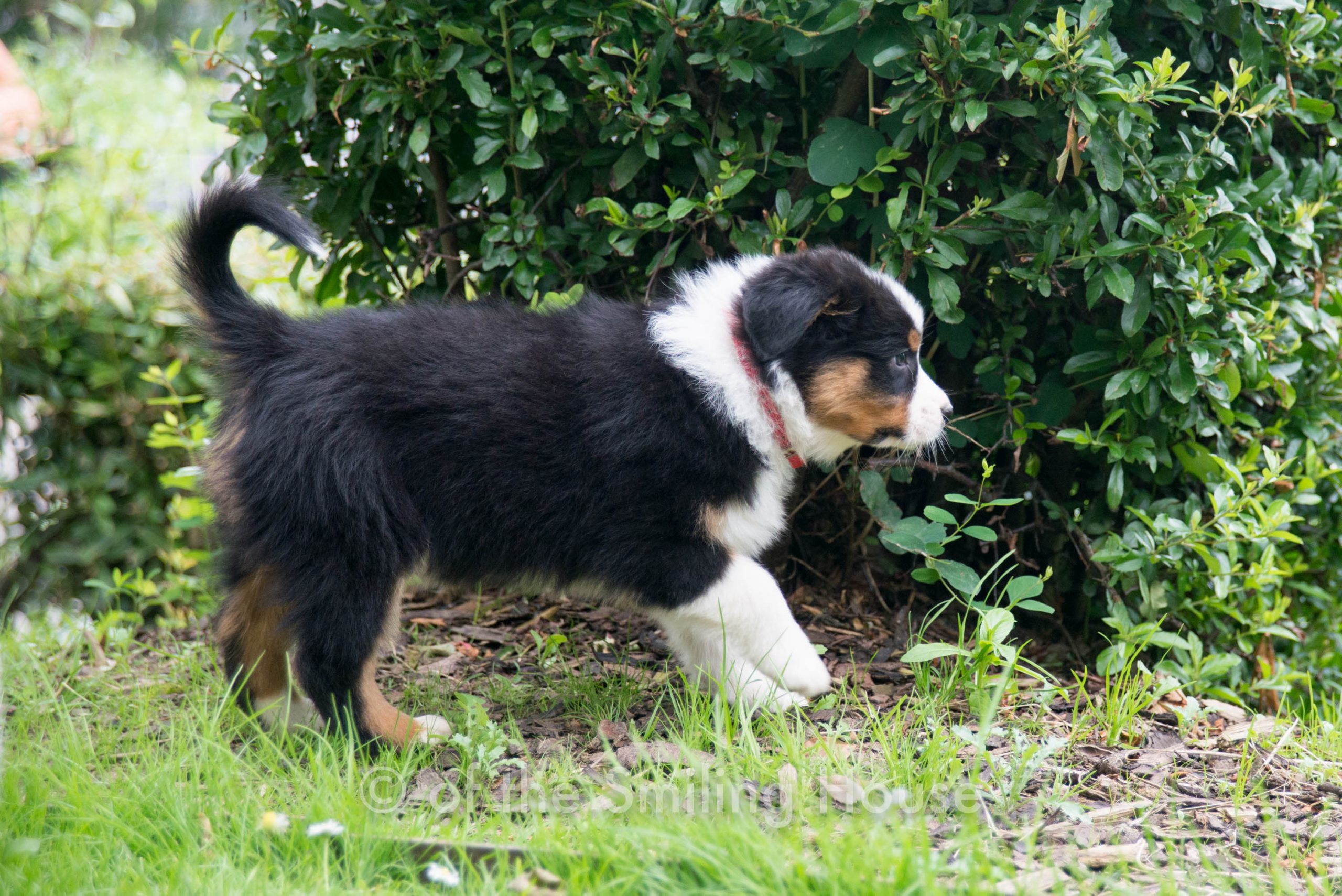 RÉSERVÉ : Pepsy of the Smiling House, mâle noir tricolore queue longue.
